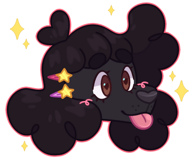 the character is shown from the neck up in a simplified, toony style. may include a simple background or elements such as flowers, sparkles, etc.
